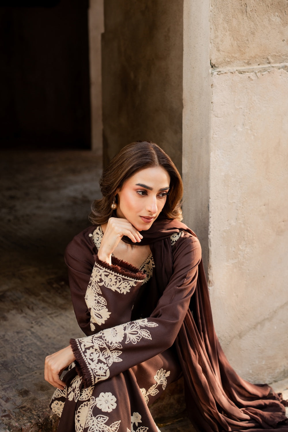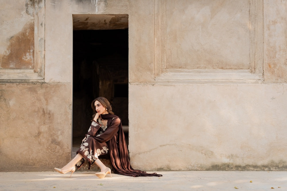 Brownish 3Pcs Embroidery
